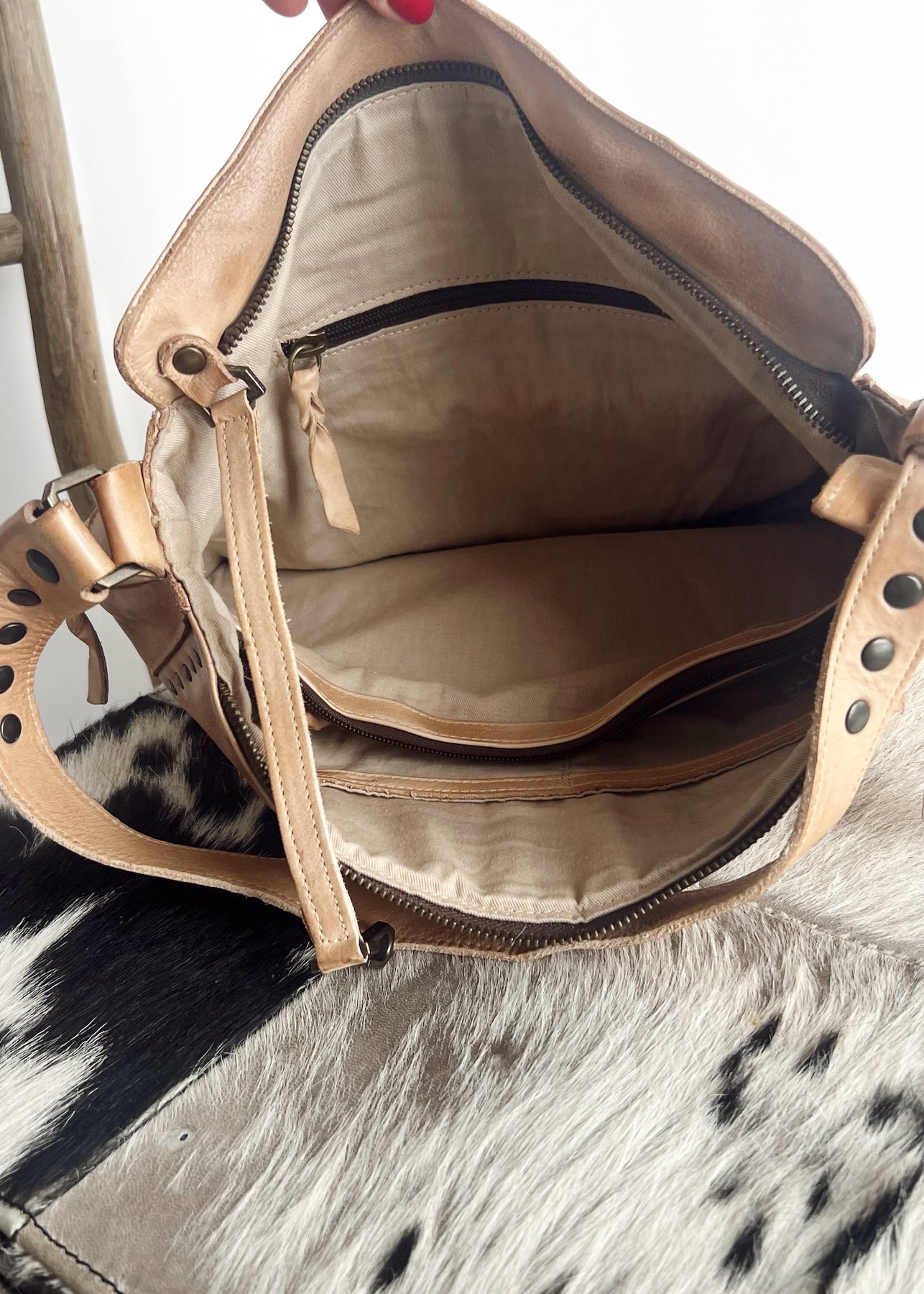 - Chrome and formaldehyde-free, vegetable-tanned leather