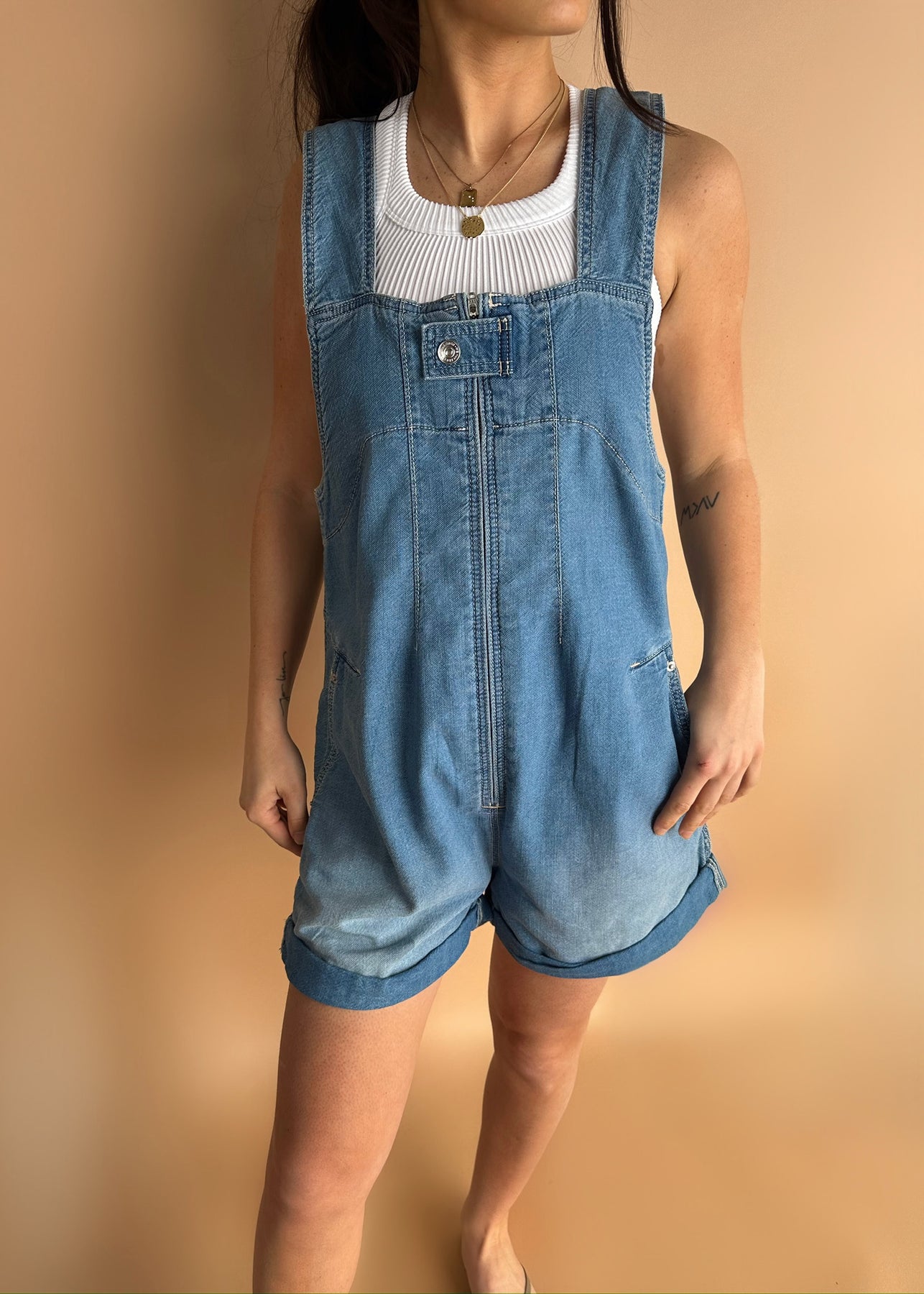 Regular price $134.00 Save Liquid error (snippets/product-template line 131): Computation results in '-Infinity'%Your easiest instant outfit, this denim shortall from our We The Free collection features a slouchy, shapeless silhouette and classic pinafore design for a timeless touch.