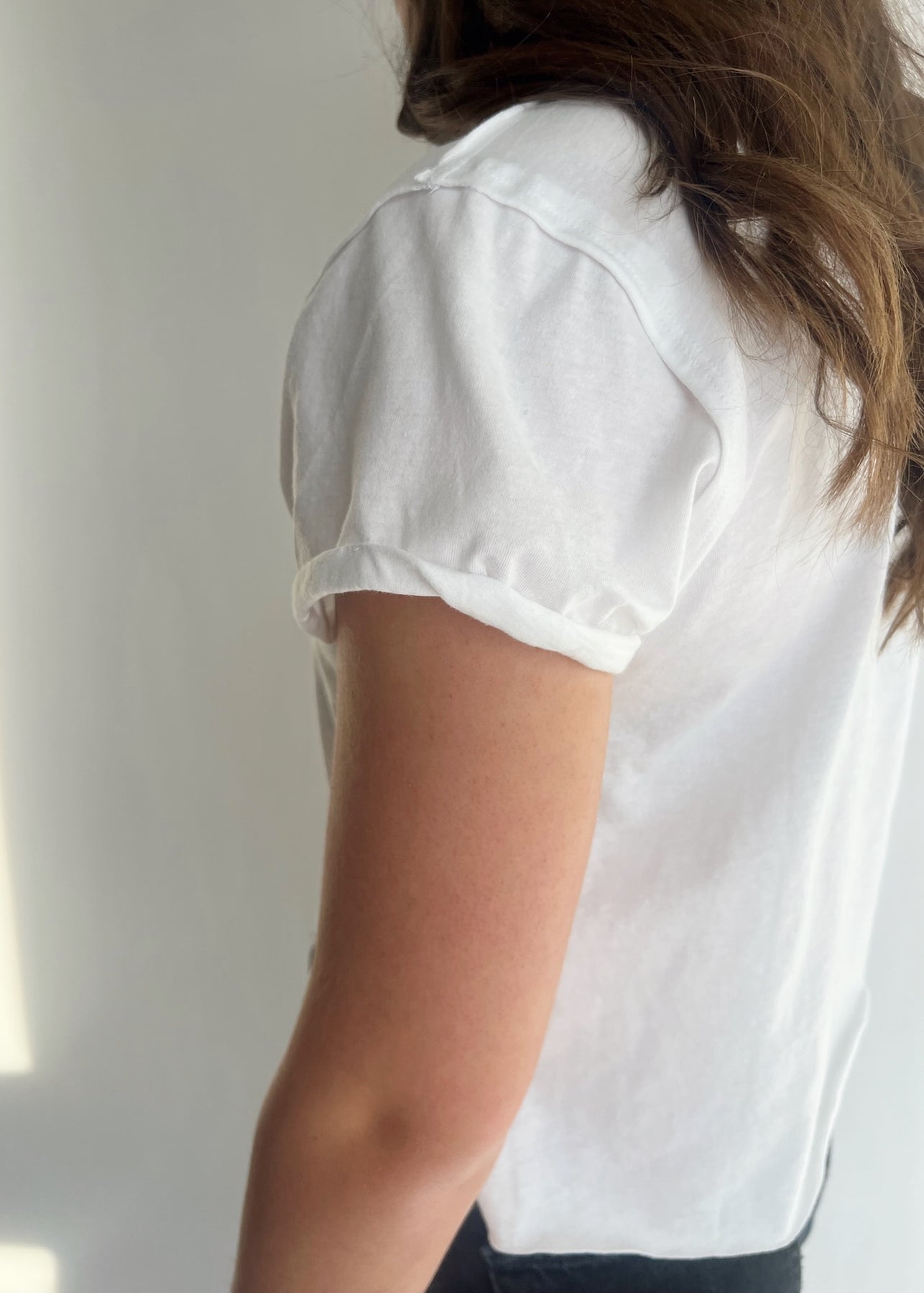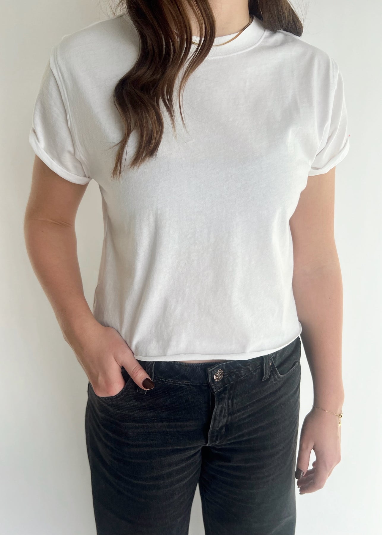 This tee sleeve is lightweight and features a slub rib fabric that is irresistibly soft. We love it styled with wide leg denim or paired witch some comfy pants.