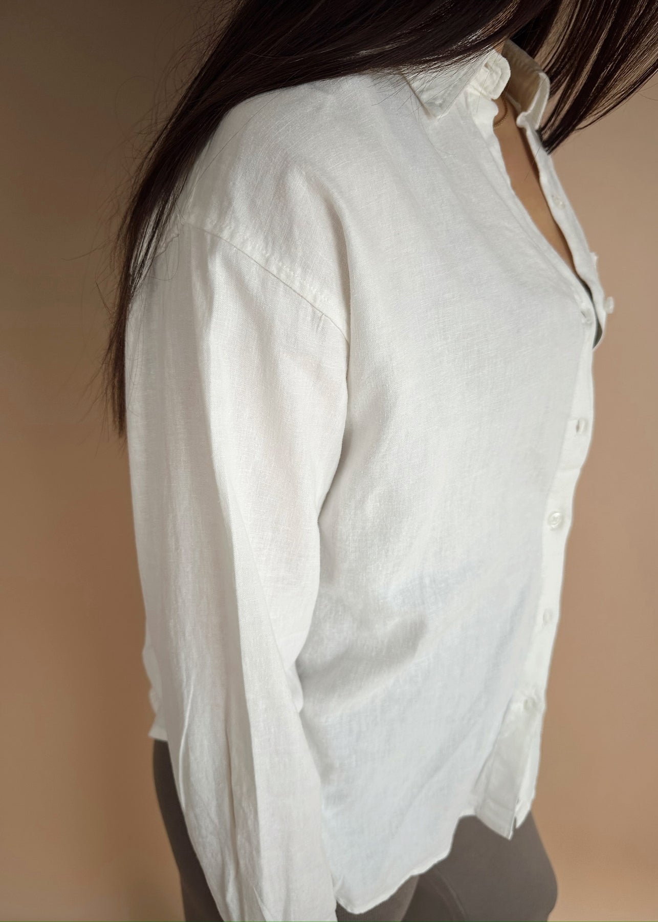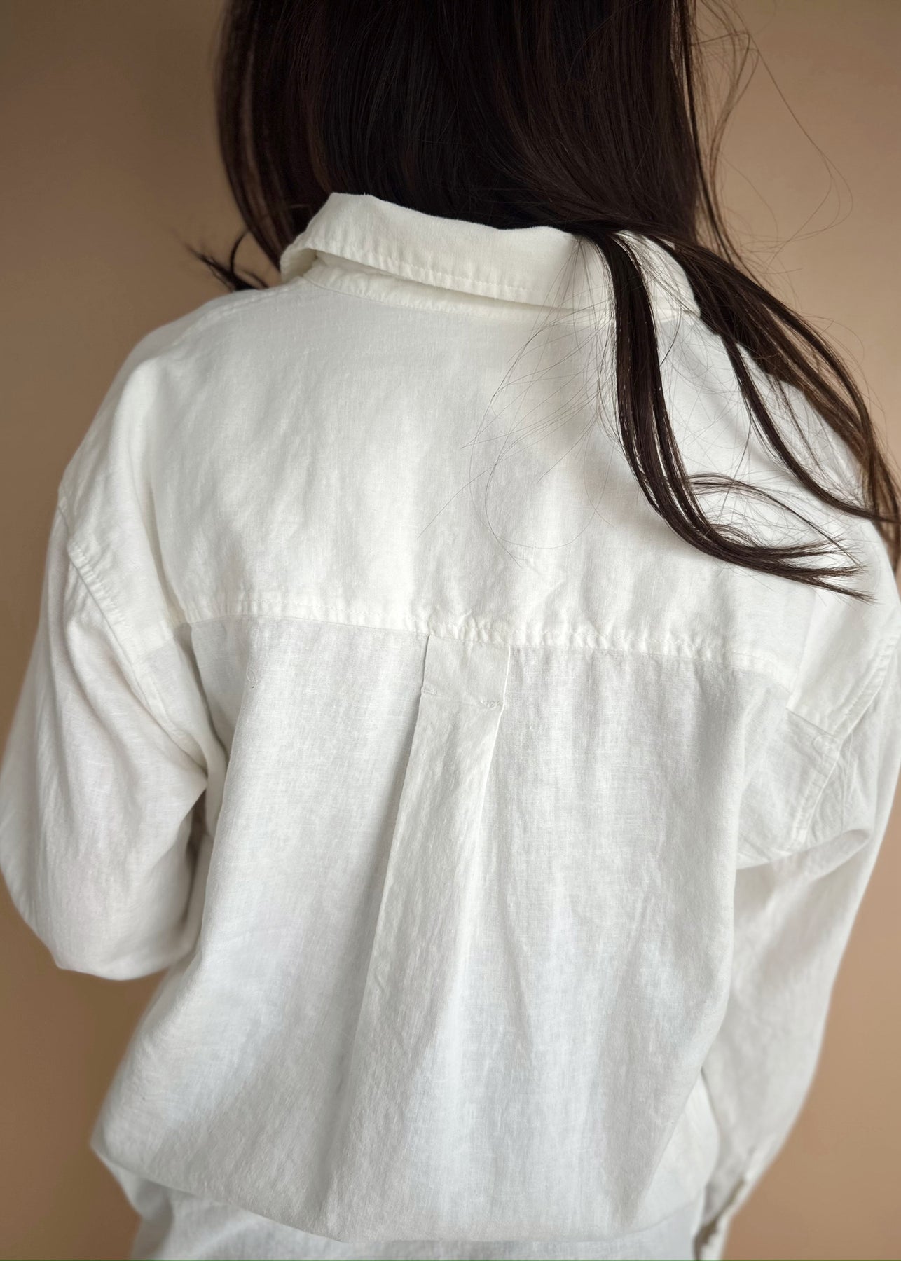 Easygoing meets elevated in this linen button-up, designed with a perfectly draped silhouette, collared neckline, and relaxed sleeves. It’s refined simplicity at its best.