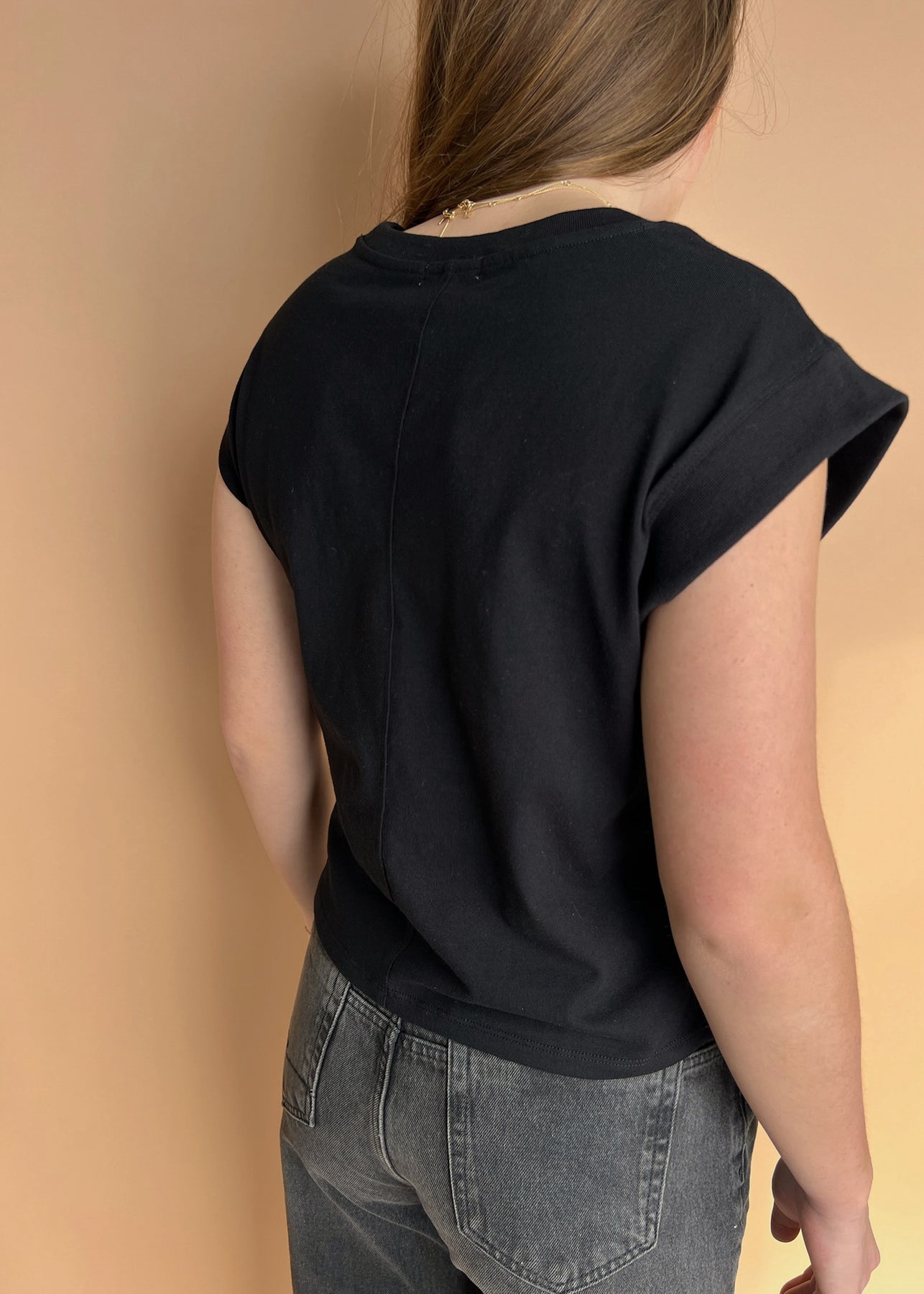 Made of 100% cotton jersey, this crewneck tee gets an update with a statement sleeve. It’s the perfect top to dress up or down. Tuck it into denim or a skirt for and effortless look.
