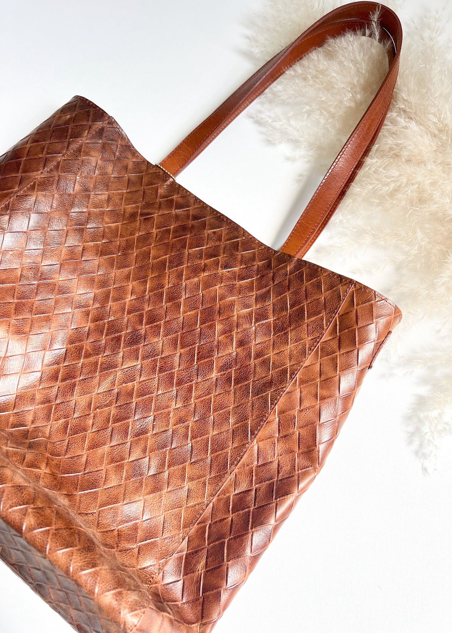 BRAVE Leather Giovana Tote - BROWNLARGE WEAVE