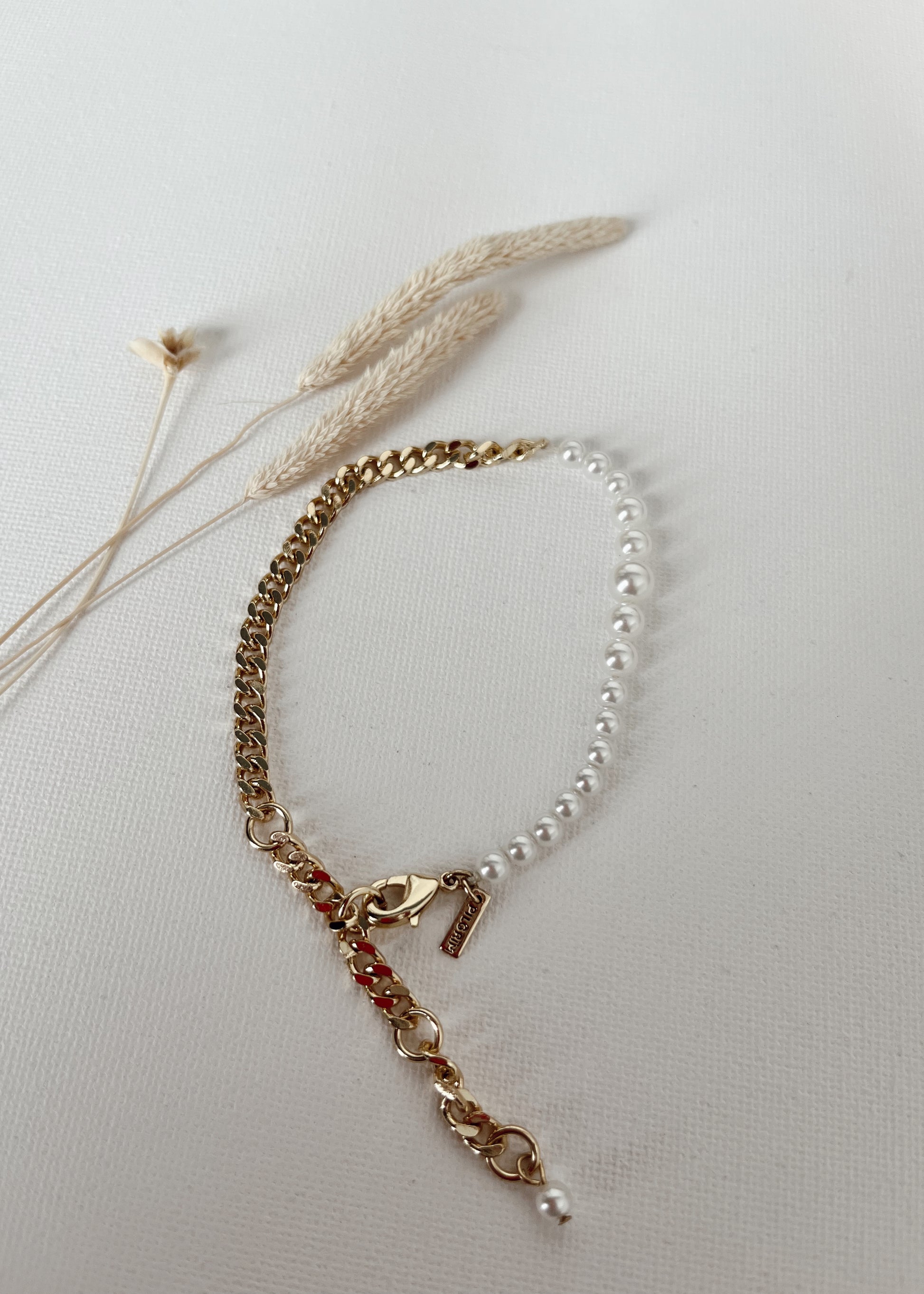 Elegance is always in style! The gold-plated or silver-plated RELANDO bracelet from Pilgrim's Classic Collection is an elegant key item in a classic design. White beads give a light and romantic feel, combined with a chunky curb chain that adds attitude and an urban edge. A super stylish combination that signals classiness and star quality.