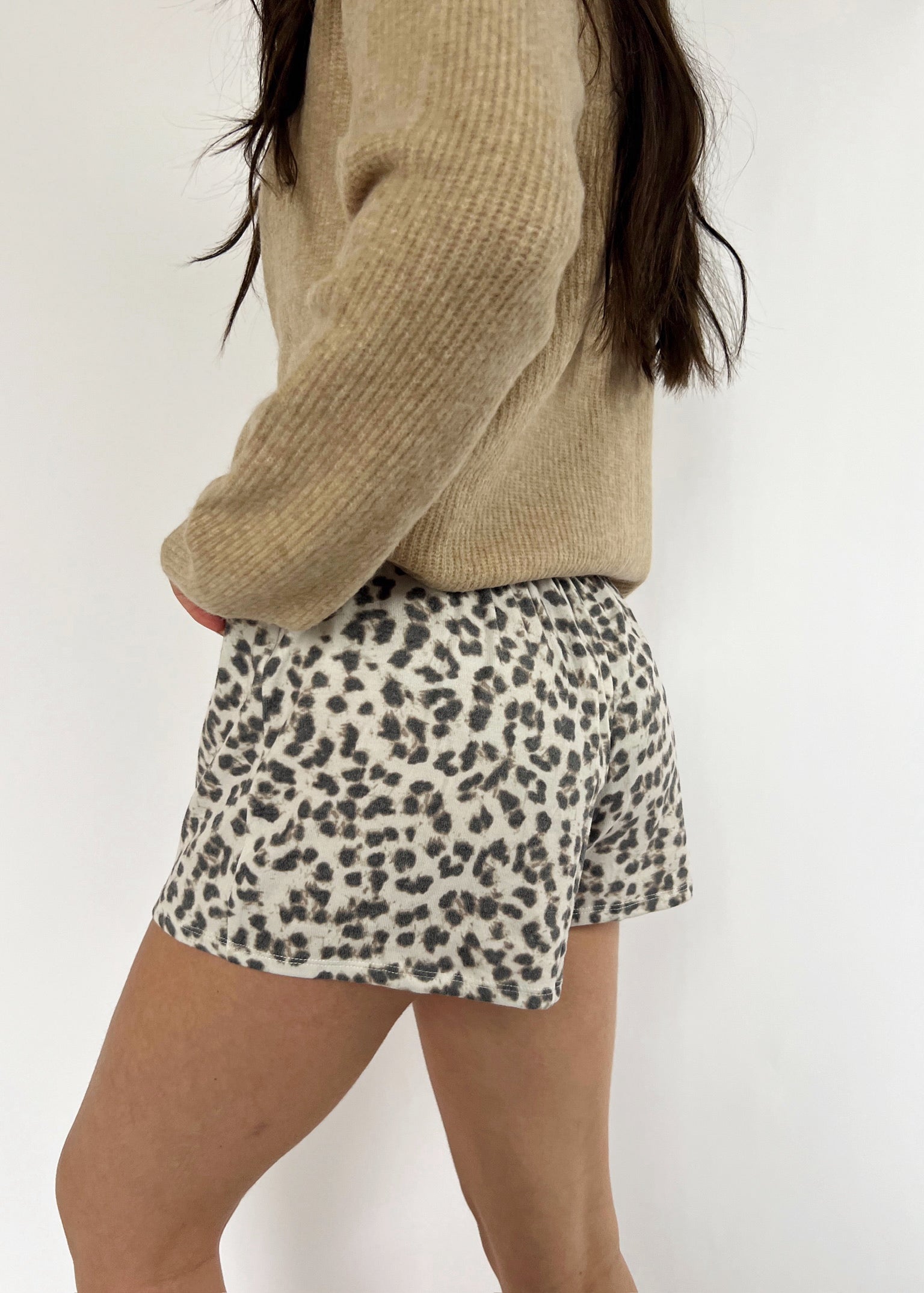 A soft brushed knit and relaxed fit make these shorts feel like a favorite from day one. The allover leopard print adds a bold, fun vibe to your off-duty lineup.